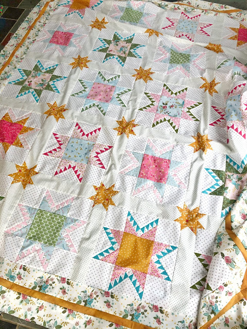 The first time I saw this quilt, I instantly loved it. Then quite a bit of time later, when I was looking at the Stardust fabric collection, I knew I had to make it using the Delectable Feathered Star quilt pattern.
